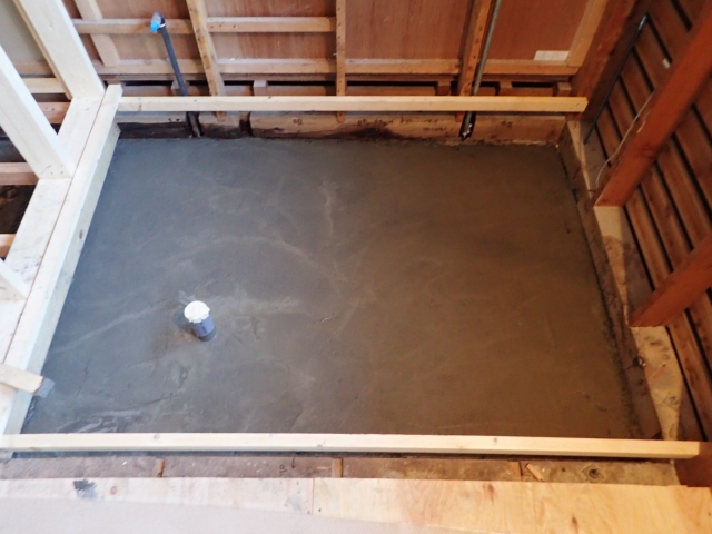 排水管も立ち上げ、コンクリートで土間を造ります。