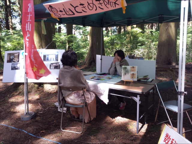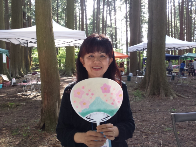 今回は、土曜日に富士山ときめき隊ブースで、うちわにパステルを描くワークショップと笑顔流を書かせていただきました。