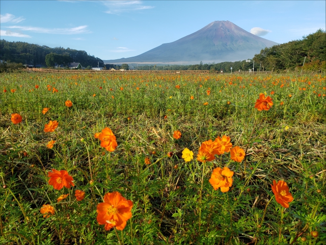 山梨県 山中湖村花の都公園は黄花コスモスが見頃です。