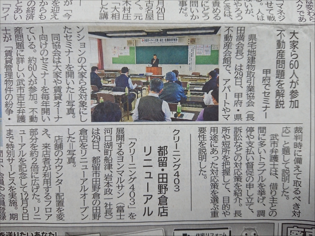 山梨県宅建協会の新聞記事を参考に掲載いたします。